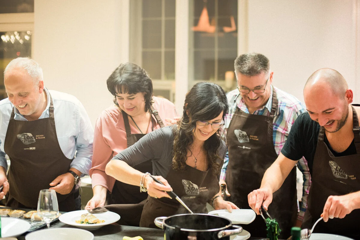 Gemeinsam am Herd: starke Kulinarik, perfekt organisiert, echtes Wir-Gefühl.